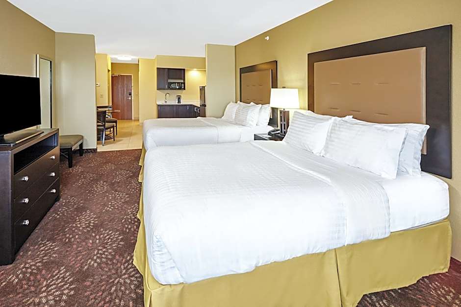 This suite includes a flat-screen TV, desk and coffee machine.
